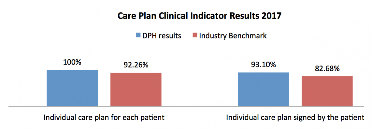 The Care Plan is a therapeutic tool to provide individualised care of the patient which is essential for patient centred care. A care plan flows from each patient’s unique list of diagnoses and is organised by the individual’s specific needs, guiding their treatment by the clinical staff. A patient is asked to sign the care plan to show that it has been discussed with them and they have been involved in its creation.